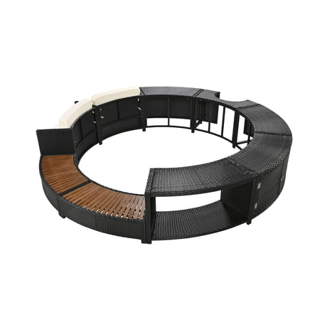 Large Premium Surround Spa Patio Rattan Sofa Set With Storage Compartments And Cushions (SAK75629)