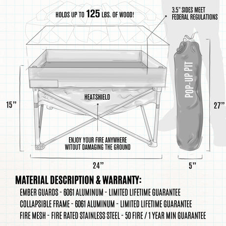 Fireside Outdoor Pop-Up Fire Pit & Heat Shield Bundle