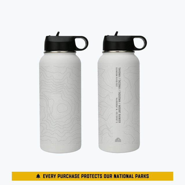 Tahoma Mount Rainier Topo Water Bottle - Laser Etched - 32oz