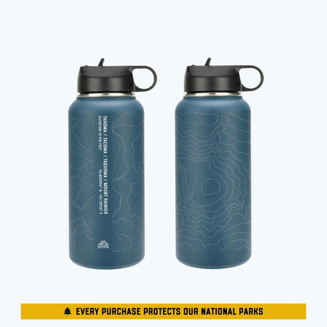 Tahoma Mount Rainier Topo Water Bottle - Laser Etched - 32oz